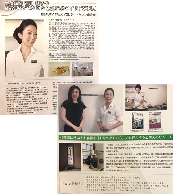 Beautytalk&茶道に学ぶ「おもてなし」に2ページにてインタビュー記事が掲載されました。 詳細はこちら